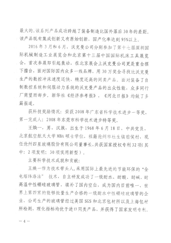滄州市人民政府授予王煥一先生2016年科學(xué)技術(shù)突出貢獻(xiàn)獎
