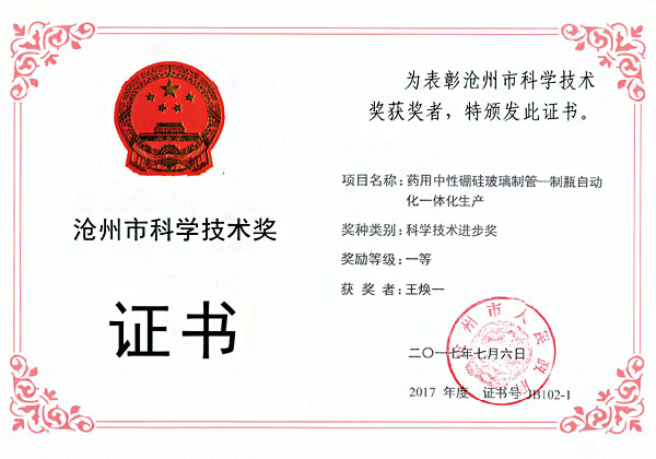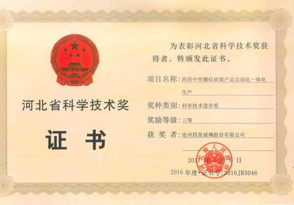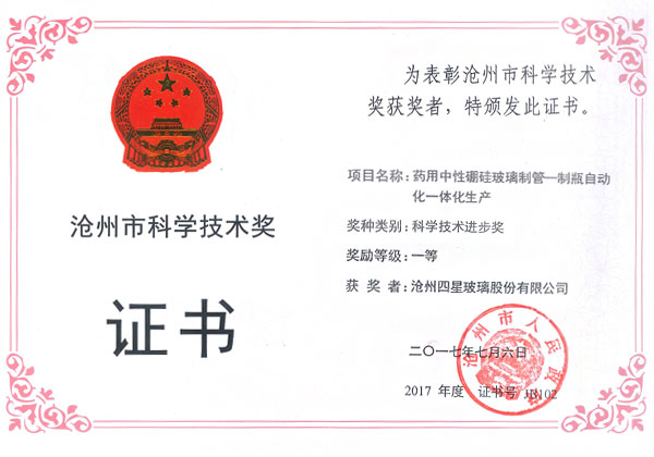 滄州四星玻璃股份有限公司榮獲河北省科學(xué)技術(shù)獎